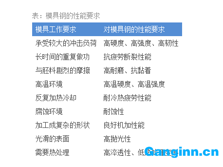 表:模具鋼的性能要求