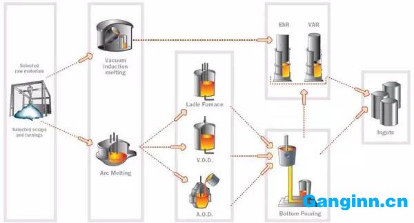 當前世界主流的先進冶煉工藝有兩種:電渣重熔(ESR)和粉末冶金。從產(chǎn)品質(zhì)量上說,粉末冶金?電渣重熔(ESR)?普通煉鋼法。