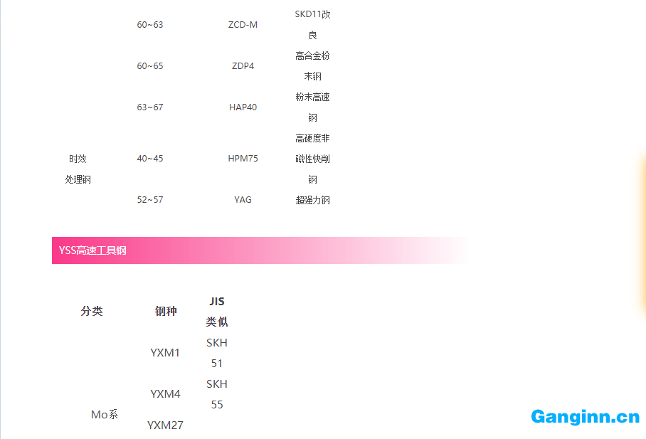 工具鋼牌號對照表